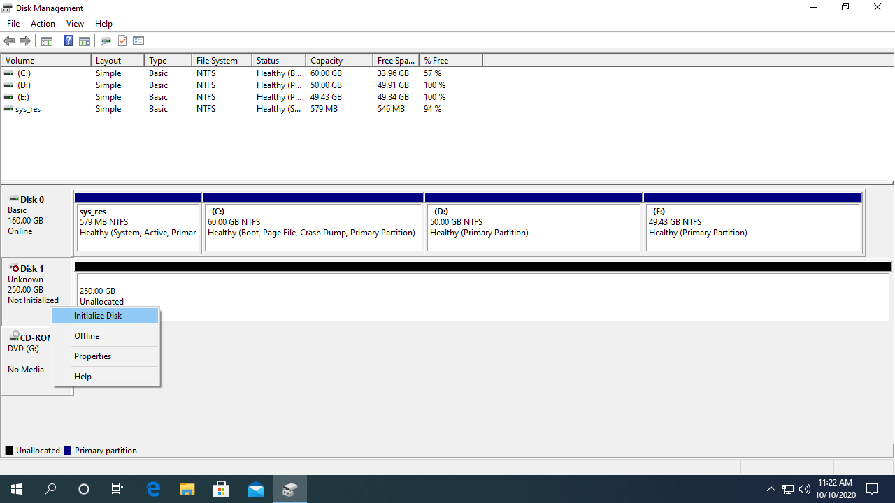 1. Right click the front of this disk and select "Initialize Disk".