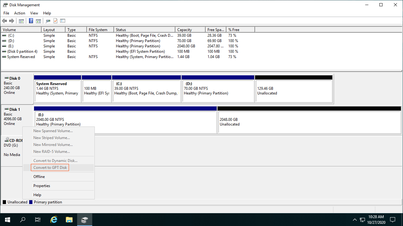 1. Converter MBR para GPT no Windows 10 com o Gerenciamento de Disco