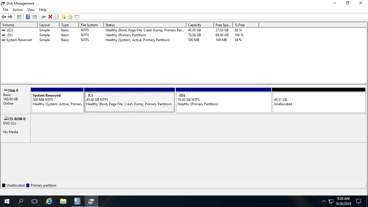 - Se houver uma quarta partição, como a E, mova-a para outro disco, independentemente de ser primária ou lógica.