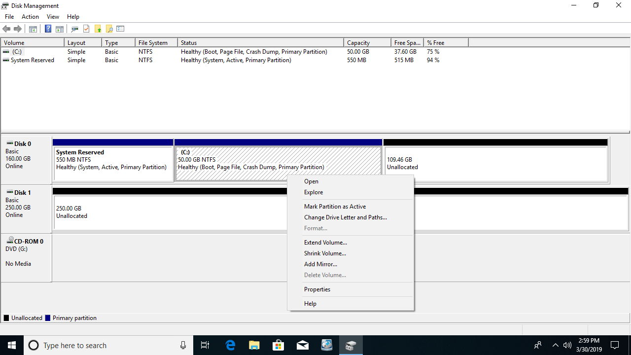 - O Estender Volume pode expandir uma unidade apenas quando há espaço não alocado adjacente atrás dela.