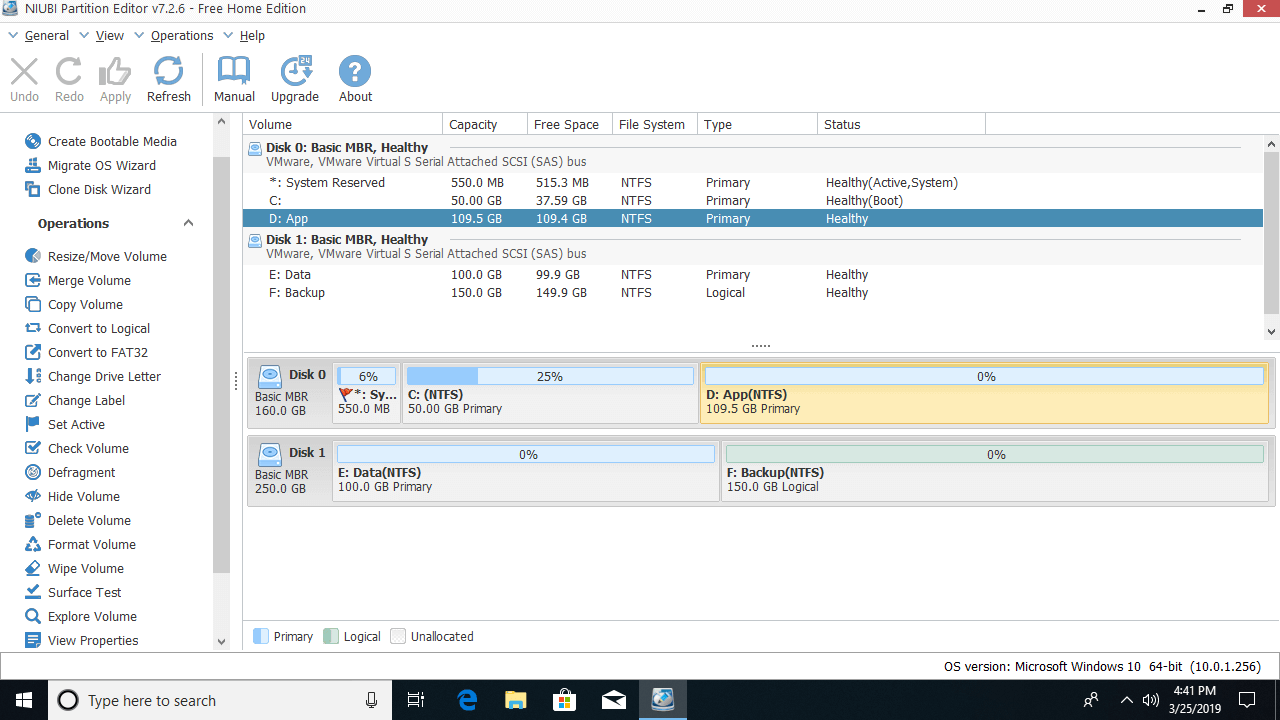 Com um software gerenciador de partição gratuito como o NIUBI Partition Editor, você pode redimensionar partições sem tantas limitações. Você pode realizar operações avançadas para computadores domésticos com Windows 11/10/8/7/Vista/XP facilmente e de graça.
