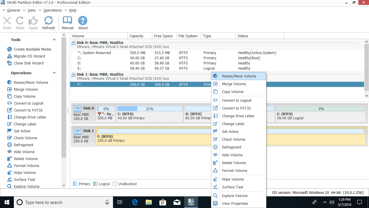 1. Mover partição do Windows 10 para a esquerda ou direita