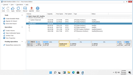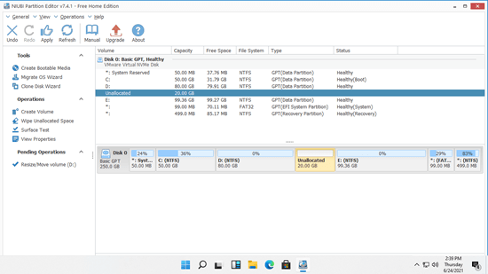 Se você deseja criar mais partições no laptop/desktop/tablet com Windows 11, basta clicar com o botão direito no espaço não alocado e selecionar "Criar Volume" no NIUBI. Se você deseja estender uma partição reduzindo outro volume no Windows 11/10/8/7, também é muito fácil.