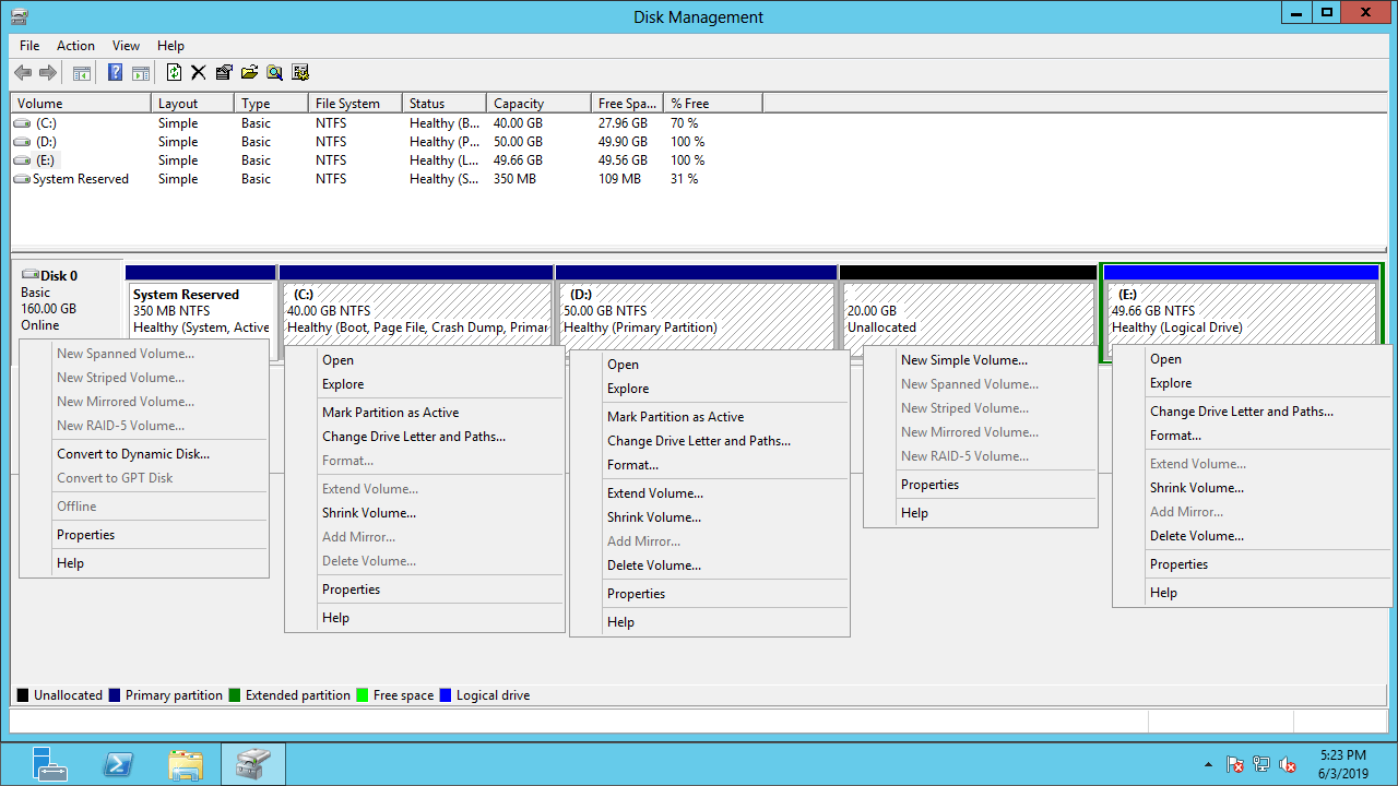 Como estender partição com o Gerenciamento de Disco do Server 2012