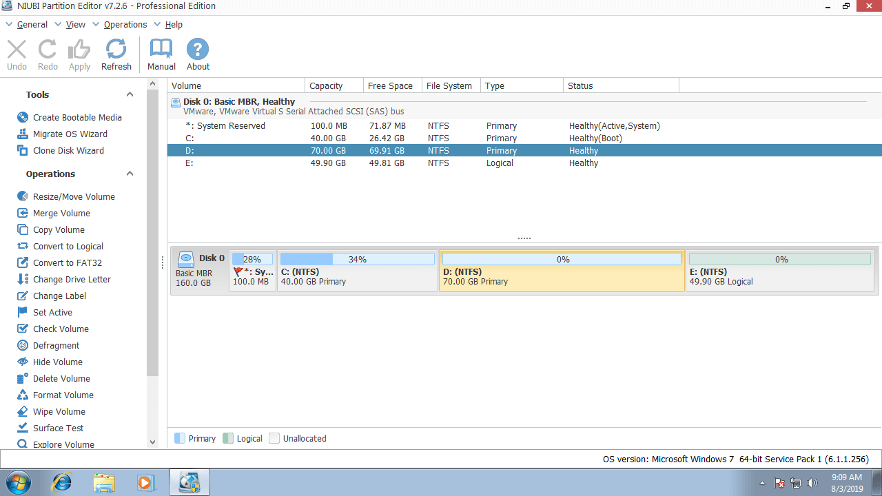 If there is plenty of free space in any partition on a disk, simply follow steps above, no matter you want to resize physical disk partition, hardware RAID arrays or VMware/Hyper-V virtual disk volume. If there is not enough free space in a disk, you have two options depends on the device you are using: