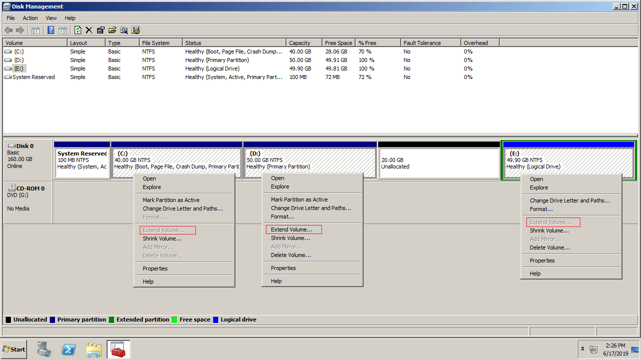 Inbuilt free disk partition tool for Server 2008 R2